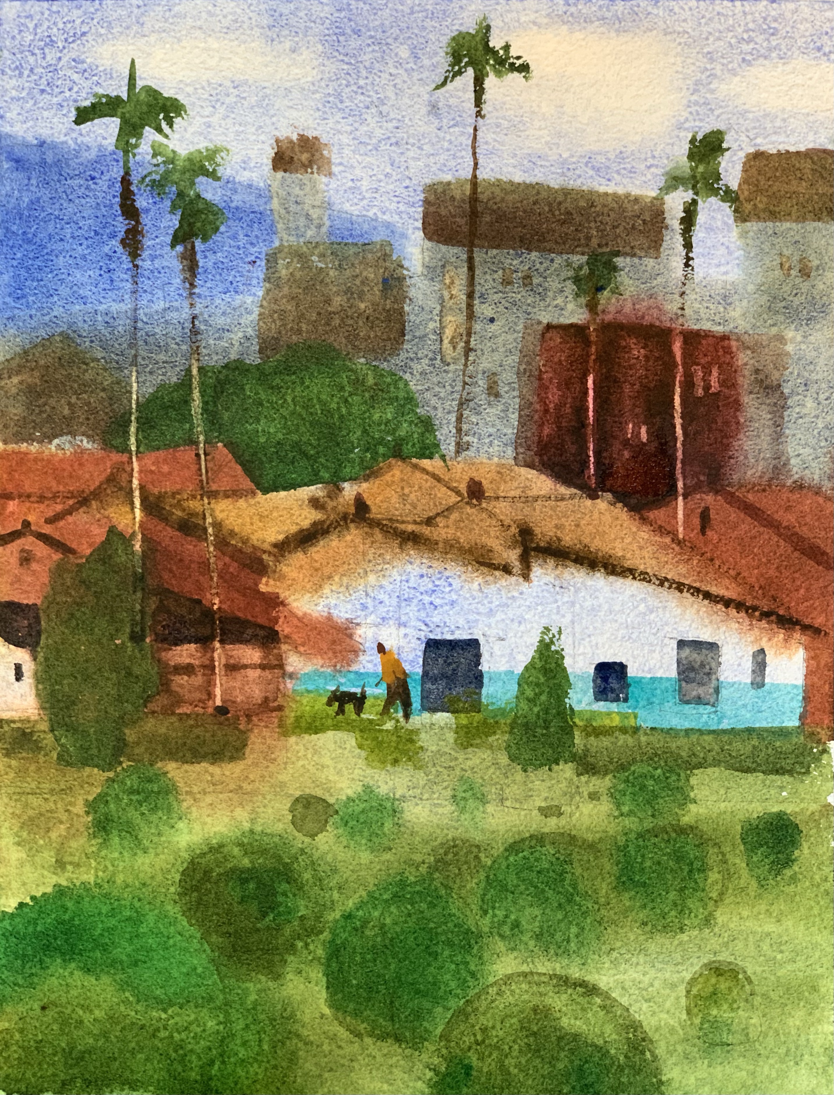 Old houses and betel palm tree