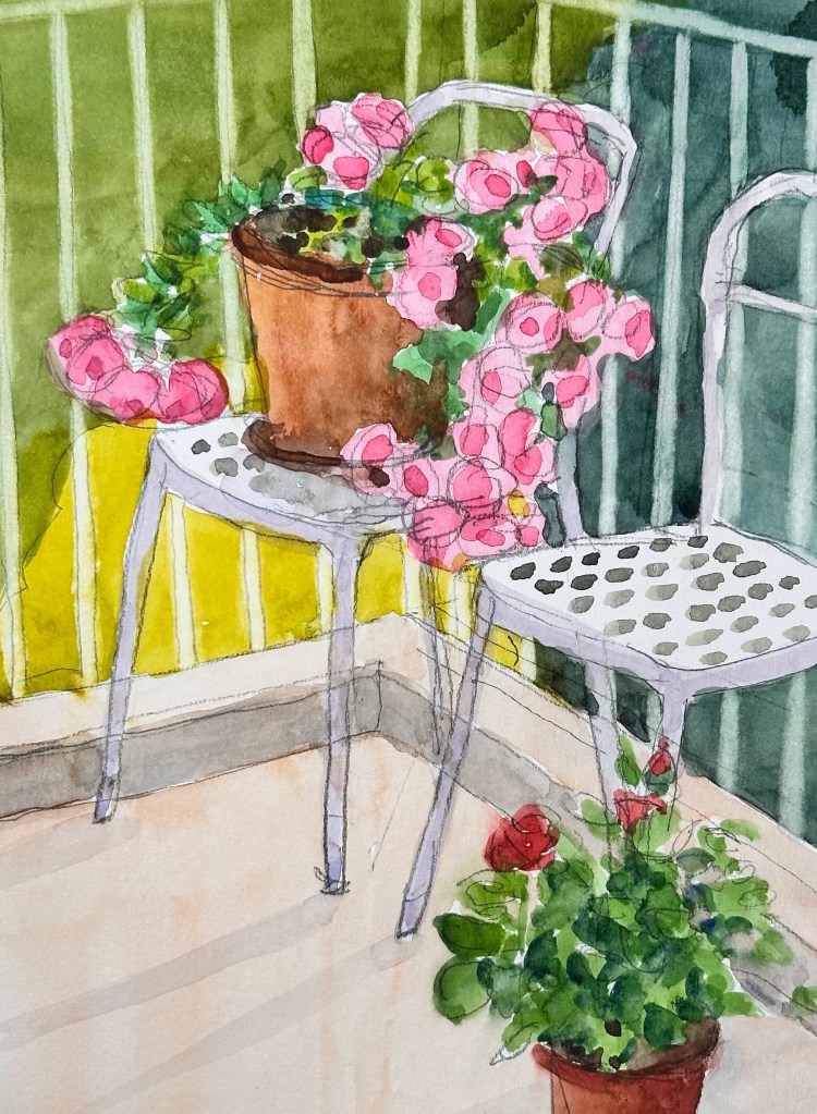 Chrysanthemum and rose on balcony